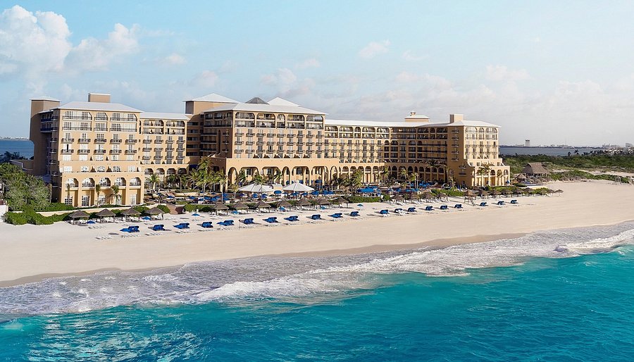 Este es el antiguo hotel Ritz Carlton Cancún y cuenta con una fama bien ganada de ser uno de los hoteles en Cancún más sofisticados y lujosos.