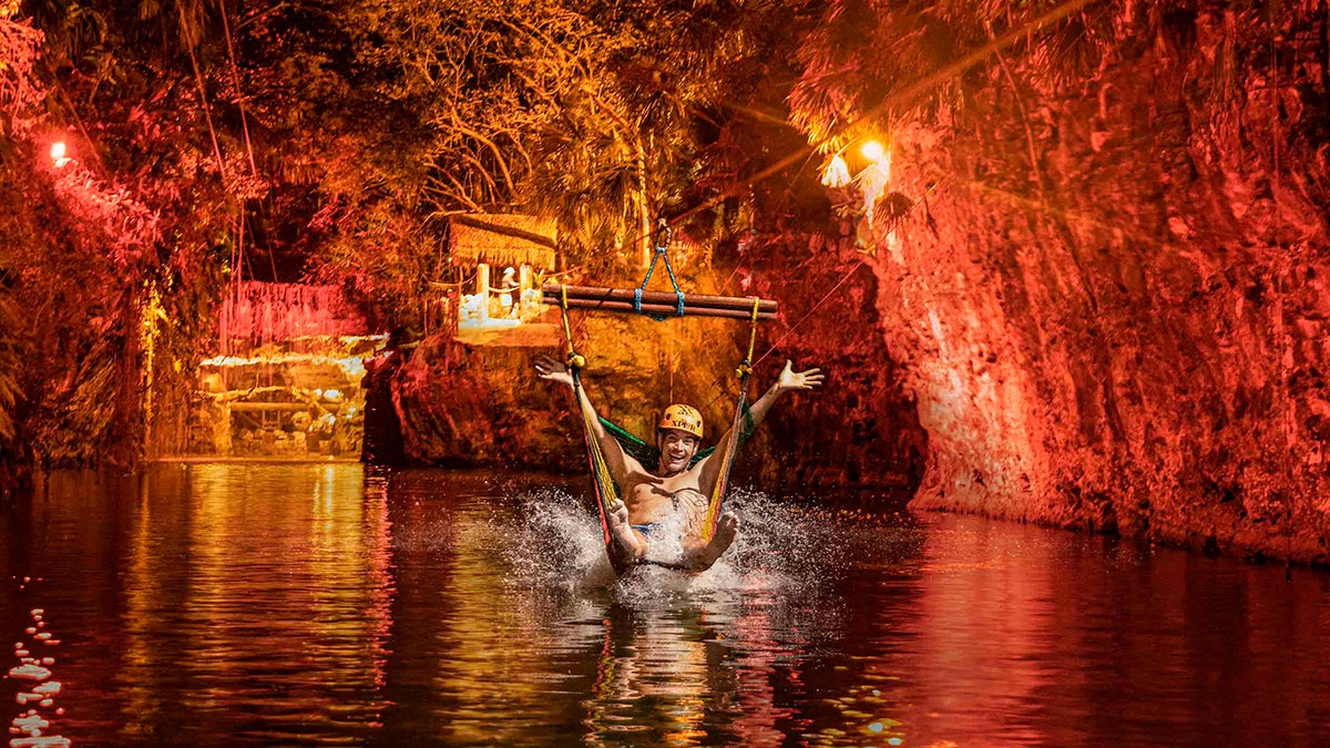 El concepto es sencillo, pero fuerte, porque puedes explorar al máximo las actividades de aventura como tirolesa, vehículos anfibios y ríos subterráneos, en un contexto de la noche y cada detalle como la luz, el paisaje y la temperatura transforma tu experiencia.